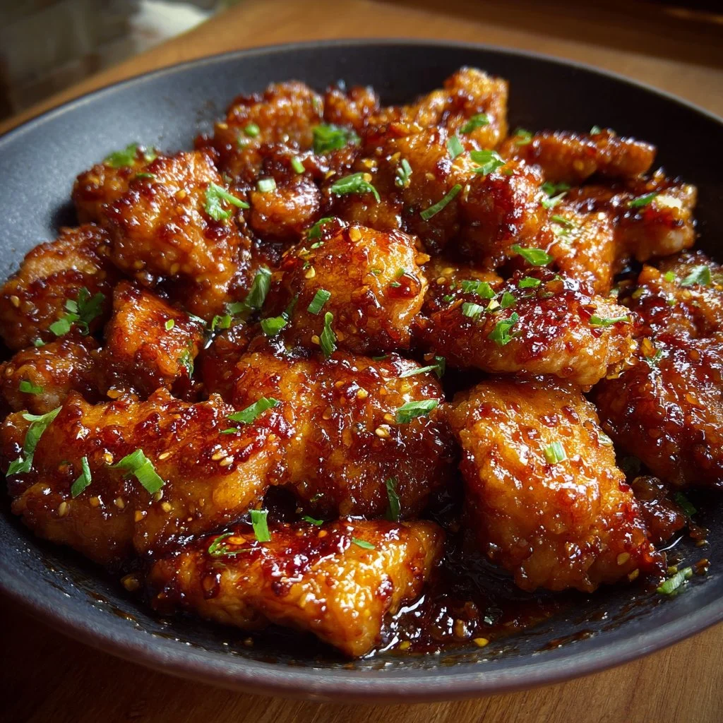 A quick and comforting dish featuring tender chicken pieces tossed in a glossy honey garlic sauce, perfect for any weeknight meal.
