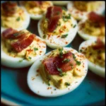 These Deviled Eggs with Bacon are the kind of comfort food that feels both homey and a little bit festive — perfect for seasons when you want cozy flavors with a touch of nostalgia. Crisp bacon folded into creamy, tangy yolk filling makes every bite irresistible, and the recipe is flexible enough to adapt to holidays, weeknight sides, or weekend brunches. If you want step-by-step inspiration or alternate takes while you cook, check out How to Make Deviled Eggs with Bacon | Downshiftology, try a classic approach with Best-Ever Deviled Eggs, or explore a southern-inspired version at Down-Home Deviled Eggs with Smoky Bacon – Carla Hall. I can’t wait to hear how your batch turns out — snap a photo, share your favorite garnish, or try a twist and tell me which variation became your new favorite. Happy cooking!