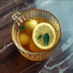 - Garnish your warm tea with a slice of lemon and a sprig of fresh mint.
